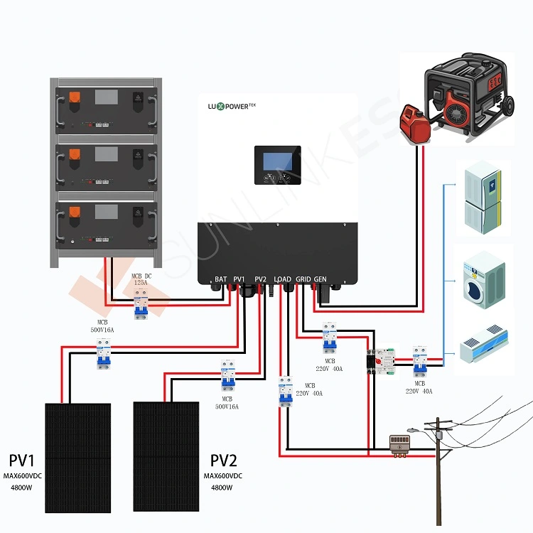 ऑफ-ग्रिड और बैकअप समाधान के लिए जनरेटर इनपुट और एसी युग्मन का समर्थन करता है।