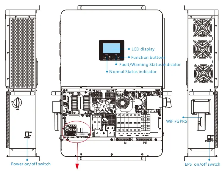 ईपीएस पोर्ट से आवश्यक घरेलू लोड को जोड़कर, सिस्टम मूल रूप से ग्रिड अस्थिरता के दौरान ऑफ-ग्रिड मोड में स्विच करता है, जिससे घरेलू गतिविधियों के लिए निर्बाध बिजली की आपूर्ति सुनिश्चित होती है।