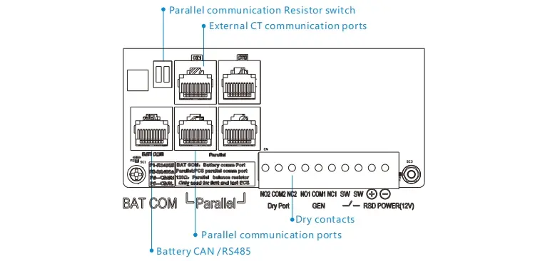 SNA श्रृंखला इन्वर्टर समानांतर सिस्टम सेटअप के लिए एकल चरण समानांतर प्रणाली की रचना के लिए 16 इकाइयों तक का समर्थन करती है